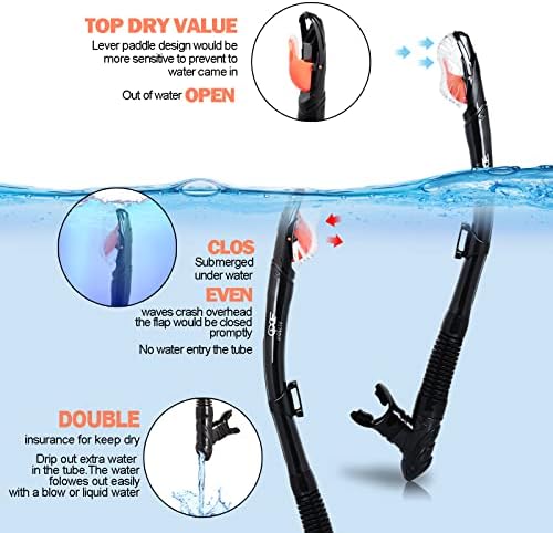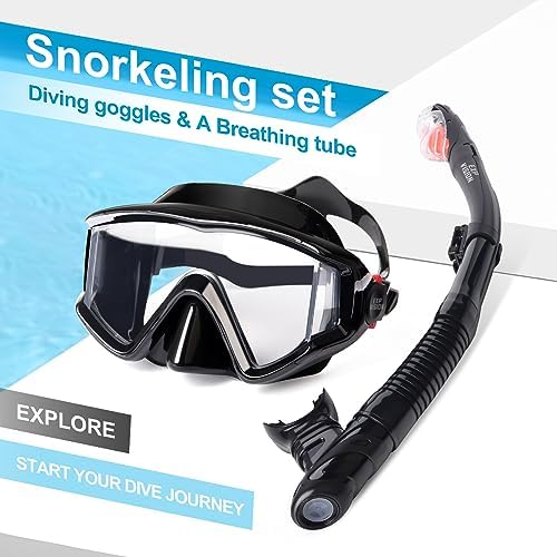 【Panoramic 3 Window Snorkel Mask】 3 window design for a panoramic view with Shatter Resistant PC lens and hypoallergenic silicone skirt, EXP VISION snorkel mask can withstand underwater pressure while diving and snorkeling, ultimate comfort. The diving mask's skirt is designed with soft and flexible silicone and the food-grade silicone mouthpiece is safe creates a watertight seal with any diver's face and attached to your mouth perfectly without any peculiar smell.    【Anti-fog Lens Gives Crystal-Clear Vision All The Time】When you're underwater, your breath can fog up the lens of snorkel face masks. But this snorkel mask is specially designed to be Fog Free. Giving you hours of enjoyable diving, snorkeling or swimming.    【Comfortable Leak-Free】This scuba diving mask the skirt is big and soft silicone straps can be adjusted for a perfect fit and a watertight seal. The diving mask ribbed silicon face seal molds to fit the faces of most men, women, youth and juniors, which is very suitable for deep free diving, snorkeling and swimming.    【Unobstructed Breathing Dry Top Snorkel】 Ahigh-quality snorkel with a dry-top valve that seals the breathing tube when submerged. dry top snorkel is designed to keep water from entering the breathing tube, ergonomic silicone mouthpiece is comfortable and durable. Lower purge valve allows water to be quickly expelled, so you can enjoy easy and unobstructed breathing while diving underwater.    【Food Grade Silicon Material】Snorkel Mask Set are made from soft transparent or food-grade silicone,and comes with great comfort,The skirt of eco-friendly materials won't make your face allergic,and it's easy to clean after use,especially suitable for long-term use in free diving,without feeling uncomfortable.    【Easy to Use & Fits for Most】EXP VISION snorkeling diving masks are favored by enthusiasts. The snorkel mask is easily adjustable, has a low inner volume, which is very suitable for deep free diving and the skirt is small, but the mask adapts easily to numerous face types.    【Diving Mask Snorkel Set】 EXP VISION dry snorkel set, Pano 3 window diving mask and dry top silicone snorkel, it's the ultimate travel companion and is suitable for snorkeling, swimming, body surfing, boogie boards and much more.