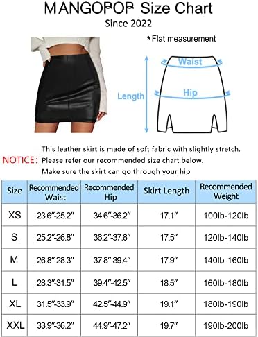 SIZE TIP - Please refer the recommended size in our last image for a better fit. We suggest to measure your WAIST/HIP circumference and select the size that suits you, according to our size chart. Any problem, do not hesitate to contact us at once. BASIC MINI SKIRT - Leather skirt for women sexy features with high waist, concealed zipper closure in the back, slim fit style, package hip design, above knee length, to show off your ultra-sexy and chic figure. Comfortable room in the butt and thighs make you easy to walk around. Every girl need a skirt like this in their closet, the little black dress of skirts SEXY SLIT SKIRT - There are two leather skirt with slit for your choice. Both of them are form fitting and flattering to fit on most body types. One is made of high stretchy fabric and back elastic waistband. The other features with concealled back zipper closure, slightly stretchy fabric, high wasit design POCKETS SHORT SKIRT - There are two pockets in front of the skirt. You can easily put some cards, phone and other item. Pocket design looks fashionable and practical OCCASION - Nice Choice for SPRING/SUMMER/FALL/WINTER. Perfect to pair with Tshirt, Bodysuit, Crop Top, Sweater, Blouse and other styles of tops. Take it as casual wear, shopping wear, street match, going out with friends, night out, club, party, cosplay, travel, vacation, and outdoors. It's a versatile women skirt best option in your wardrobe! Certainly, a good choice as a gift