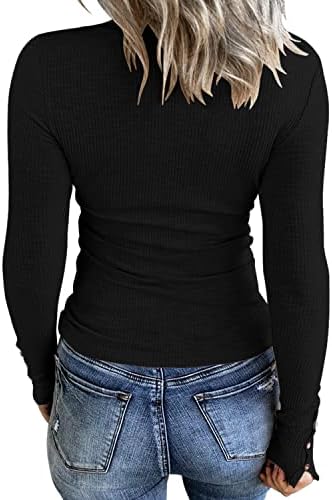 APOFER Womens Long Sleeves Ribbed Knit Tunic Shirts Scoop Neck Button Down Tops Casual Henley Tee Shirt Slim Fit Blouses