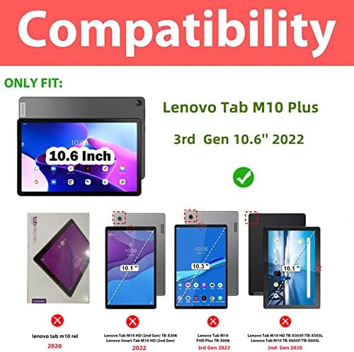 Compatible with Lenovo Tab M10 Plus 3rd Gen 10.6 inch Tablet, Not compatible with any other devices.    Full-Body Protection : Case for Lenovo Tab M10 Plus 3rd Gen 10.6 inch Tablet is made of shock-absorbing Non-toxic silicone material, protect your tablet from accidental drops, bumps and shock.    PREMIUM QUALITY : Made of Ultra Slim Soft Silicon for comfortable sense of touch and durable purpose while provides ultimate protection. dense silicone case fully covers the back, sides and extend the surface of your tablet offering a better protection in daily usage and easy worry about dropping or screen crack.    Stand Cover : Triple-fold design is super convenient for providing different viewing angles when watching vedios, texting, gaming or learning etc.    Customer Service-If you have any questions with this Lenovo Tab M10 Plus 3rd Gen 10.6 inch case, please contact us via Amazon message system. We will reply you within 24 hours and giving you a satisfactory answer.