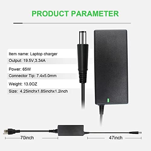 Input: 100-240V 50-60Hz Output:19.5V 3.34A 65W, Max Output Power:65W,Color: Black Connector tip: 7.4mm*5.0mm tip    Compatible Part Numbers: PA-12 PA12 LA65NS2-01 LA65NE1-00 HA65NS-00 HA65NS5-00 DA65NM111-00 DA65NM130 FA65NE1-00 PA-2E PA-1650-02DD 310-2860 928G4 A00008 AA22850 PA-1400-12 492-BBKH 492-BBOM 492-BBOU 332-1831 492-BBKH Y1H45 M1P9J DPW2X 310-2860 310-3149 310-4408 310-7251 310-7696 928G4 A00008 AA22850 MY4Y4 N6M8J YT886    Compatible models:For Dell Chromebook 11 3120 3180; for Inspiron 1000 3000 5000 7000 15R series; for Latitude 5480 5580 7280 7480 5414 7414 E5440 E5450 E5540 E5550 E7240 E7470 E7270 E6520 7404 3580 3480 (Please see below detail compatible models)    100% New from Manufacturer, Overcharger and Discharger Circuit Protection, CE-/FCC-/RoHS-Certified for safety    Custom service: 24 x 7 email support ,12 months warranty and 30 days money back guarantee.