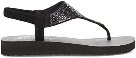 Rhinestone embellished synthetic upper with stretchable sling-back strap Lightweight midsole Yoga Foam cushioned comfort footbed Flexible traction outsole casual thong sandal rhinestone embellished slingback ankle strap