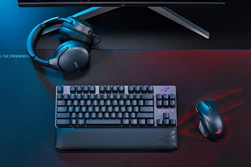 Tri-mode connection: Use Bluetooth to connect and switch between three devices at a time, enjoy up to 76 hours of low-latency gameplay in 2.4 GHz RF wireless mode, or use standard wired USB    ROG RX optical mechanical switches: Exclusive ROG switches feature centralized RGB lighting for all-round in-key illumination, and provide consistent wobble-free keystrokes with near-zero debounce delay    FPS-ready: Tenkeyless form factor leaves more room for the mousing hand and includes an extended Ctrl key that’s easier to hit    ROG PBT doubleshot keycaps: Provide a solid typing feel and long-lasting durability (keycap material may vary by region)    Built to last: Durable aluminum alloy construction with sandblasted finish