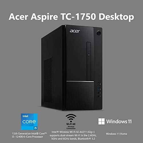Acer Aspire TC-1750-UR11 Desktop | 12th Gen Intel Core i5-12400 6-Core Processor | 8GB 3200MHz DDR4 | 512GB NVMe M.2 SSD | 8X DVD | Intel Wireless Wi-Fi 6E AX211 | Bluetooth 5.2 | Windows 11 Home