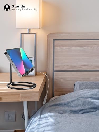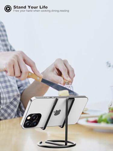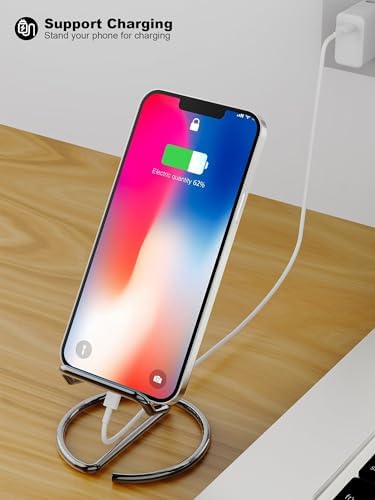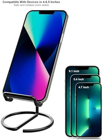 Wide Compatibility: This cell phone stand is compatible with all 4-6.5 inches smartphones in phone cases, like iPhone 14, 14 Pro,iPhone 13 Mini, iPhone 13, iPhone 13 Pro,12, 11 Pro XS XR.    Unique Design: This phone stand for desk has excellent stability and play a good role in your office, kitchen, nightstand, dining table. No bent & tangling & tip over worries when using while charging.    Sturdy & High Appearance: The cell phone holder is made of premium metal,it stays firmly in place,hold your phone steadily,no worry any wobble at all.    Ergonomic Viewing Angle: The phone stand holder is in accordance with ergonomic design. Providing you comfortable viewing angle which helps to fix your posture and reduce neck & back strain.    Service Satisfaction: If you are not satisfied with our Cell Phone Stand Holder, please feel free to contact us, we will reply within 24 hours and provide you with a satisfactory solution.