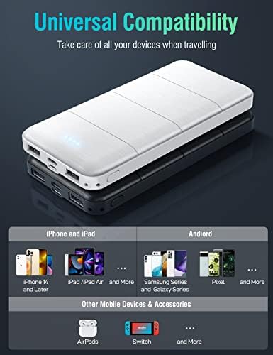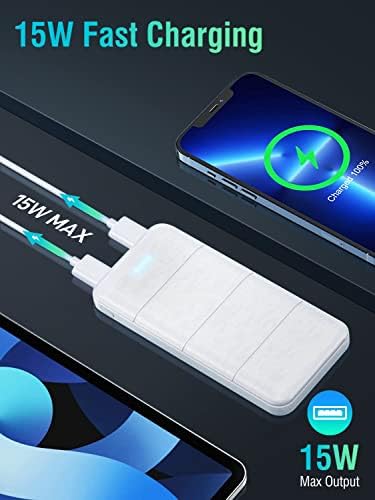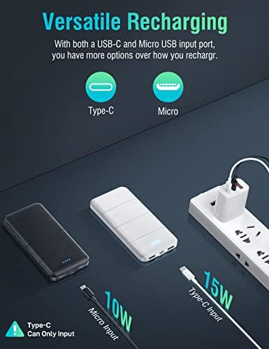 Portable Charger with 5V 3.1A 2 USB Output ports ,which can fast charge 2 devices at the same time.The USB C and Micro USB input ports can fully refill the battery itself in 4-5 hrs at 5V 2.0A.(Note: Type-C port can only input, does not support output)    Power Bank has 15000 mAh ultra-high capacity.The shell adopts the imitation metal wire drawing process, which is more wear-resistant than other smooth ordinary styles. The ergonomic arc design is easy to hold and feels comfortable.    The smart IC inside the power bank label can automatically identify or be compatible with all products. Smart IC conversion current is stable, which can effectively prevent overcharge, overvoltage, overcurrent and short circuit, bring you a safe using experience.    Power bank uses the safe high-density lithium polymer battery module, which is more compact and has a larger battery capacity, It exceeds the traditional Lithium ion battery on safety.The safety of customers is our most concerned about ,Customer satisfaction is our greatest motivation.    The portable charger is easy to use and simple, and also easy to carry. You can travel without the anxiety of charging. Because the power bank can solve the problem of charging for you.