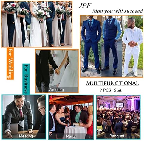 ACTUALLY 3 PIECES! -- In addition to JACKET and PANTS, we also include a high-quality Neck Tie ($10 dollars retail)! The 3-piece set gives you more options on wearing according to different weathers and occasions. SUPERIOR MATERIAL -- Outer is 80% Polyester and 20% Viscose materia, it is comfortable, breathable, softer, smoother, easier to wash and keep the shape. Inner is polyester fiber , it is breathe freely and absorb sweat. MODERN STYLE -- Our formal/casual suit set is with slim-fitting cut from 3D draping. It will be a little tighter than regular suits but easier to present your perfect figure. You will become the focus of the occasion throughout the day after you wearing it. OCCASIONS -- Easy to match with any formal/business tuxedo shirt, suitable for multiple occasions, such as wedding, party, business, graduation, date, work, meeting, prom, banquet and homecoming. It is also a good choice as a gift for your friend, father, brother and son. ABOUT SIZE: Please only look at our size measurements chart in image 2 and 3.