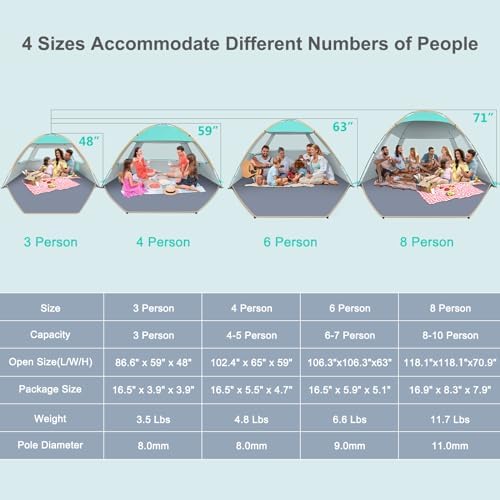 Gorich Beach Tent, Beach Shade Tent for 3/4-5/6-7/8-10 Person with UPF 50+ UV Protection, Portable Beach Tent Sun Shelter Canopy, Lightweight & Easy Setup Cabana Beach Tent
