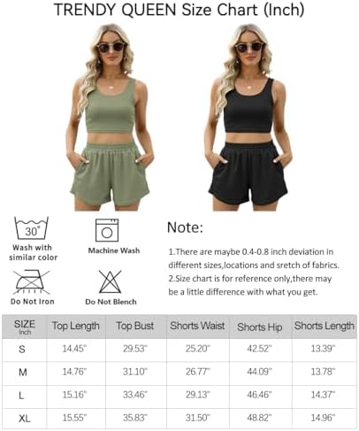 ★Material:The two piece pajama sets for women is made of 97%Polyester and 3%Spandex, soft and lightweight polyester material, which is breathable and skin friendly to makes you feel cool,cozy and comfortable. ★Design:Cut casual sleepwear for women, short sets 2 piece outfits, sleeveless, square neck,solid color, relaxed fit, tank crop top,two pieces workout sets,preppy clothes ★Occasion: This trendy womens two piece summer casual outfits cute matching sets suitable for vacation,beach,casual,festival,airport,daily wear,travel,,outdoor activity, shopping,office, party, school, running,club,sport,gym,dancing,hiking,biking,yoga,spring,summer and fall.It's also a good gift to your friend or family. ★Match:matching high waisted loose athletic shorts with two sides pockets,standard size,suit for summer vacation. ★Ideas: This two-piece matching tracksuits is suitable for gym, hiking, jogging, workout, biker, golf, athletic,etc. Let you shine in any occasion.         #2,858 in Clothing, Shoes & Jewelry ( )   #1,218 in