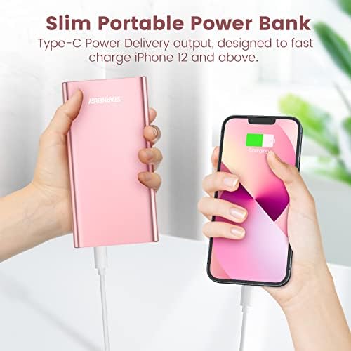 【Designed for IOS Devices】This portable charger is perfect for iPhone users or type-c phone users, it has a 8-PIN input port, 1 USB output port and 1 type-c Power Delivery port for both input/output, this means you only need 1 charging cable to carry around for both charging your iOS devices or recharging the power bank(charging cable for iPhone included in the package)    【Dual High-Speed Input and Output】Type-c port provides fastest 20W Power Delivery output for iPhone 15 14 13 12 SE3rd and other PD compatible devises, the other USB Port offers charging speed up to 5V/3A(max), both outputs are much faster than regular 5V/1A charge, saving you a lot of time, you can also charge 2 devices at the same time    【Large Capacity & Wide Compatibility】This portable charger is airplane safe and has full 12000mAh Juice, provides more than 2.2 charges for iPhone 15 14 13 12 or at least 4 solid charges for an 6/6S, Samsung Galaxy S20 2 times/Airpods Pro 45 times, compatible with iPhone 14 13 12 11 X XS Pro/Pro Max series, iPhone XR/SE/8/8 Plus/7/7 Plus/6s/6, Samsung Galaxy cell phones and other Android smartphones and more    【Intelligent Safety Protection】Grade A+ Li-polymer cell and premium microchips inside, offer multi-protect system to protect your devises from over-charged, over-discharged, over-voltage, over-current and short circuit, battery life over 500+ recharge cycles, ultra safe and reliable    【What's Included】1 *STARNERGY 12000mAh Portable Charger, 1 * Charging Cable for iPhone, 1 * User Manual. We provide 24 hrs friendly customer service and 2 years warranty