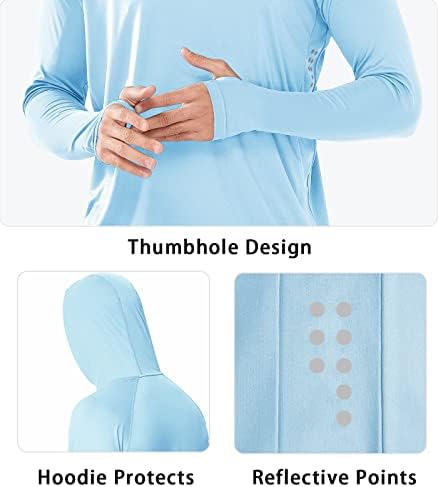 PREMIUM FABRIC: Ultra-soft, quick-drying fabric provides ultimate comfort and ultra-light breathability that actively wicks moisture away from your skin, keeping you dry, cool and comfortable during your workout SPORTS SAFETY: Our upf 50+ sun shirt features a stylish reflective dot design (distributed under the armpits and on the outside of the arms), allowing you to improve sports safety in low light COMFORTABLE FIT: This hiking shirt long sleeve features a tagless collar and flatlock seams to reduce chafing and improve comfort, providing a full range of motion for both arms and a relaxed fit that isn't too tight to give you freedom of movement UV PROTECTION: 50+ UPF rating provides excellent UV protection to protect your skin from UVA, UVB rays APPLICABLE SCENARIOS: Perfect for a variety of sports and activities, including outdoor sports, fishing, sailing, swimming, running, hiking, etc.         #6,285 in Clothing, Shoes & Jewelry ( )   #13 in