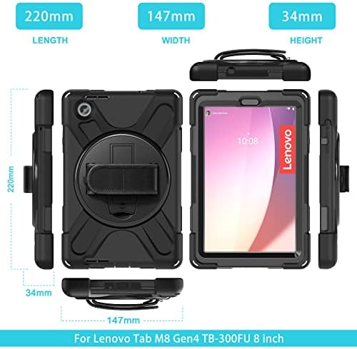 ?【Case for Lenovo Tab M8 4th Gen 2023】 Designed for Lenovo Tab M8 4th Gen (Model: TB-300FU). Not compatible with any other devices, Please check back bottom of your tablet to find the model number.    ?【Lenovo M8 Tablet Case with Adjustable & Detachable Carrying Strap】 According to any need, remove the shoulder strap or the length can be easily adjustable. It also features displaying your lenovo tab m8 tablet behind car head rest for entertainment for kids.    ?【Lenovo Tab M8 Case with 360 Degrees Rotating Stand & Adjustable Hand Strap】 On the back side of Lenovo Tab M8 Kids Case, built-in kickstand can supports your tablet both in horizontal/vertical position and hand strap makes it easy for you to hold the Tablet.    ?【Rugged Protection Case for Lenovo M8】 Advanced three layer drop protection nonslip for Lenovo Tab M8 combined of polycarbonate hard shell and soft silicone cover withstands accidental drop, bumps and shock.    ?【A 100% RISK-FREE PURCHASE】: Is there something wrong with your new TSQQST Shock-absorption high impact resistant Case for your Lenovo Tab M8? We always do everything possible to ensure your complete satisfaction!