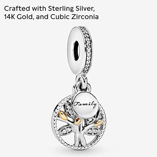 Family Heritage: A beautiful representation of how families are connected through many generations. Created with sterling silver, cubic zirconia stone-encrusted leaves and genuine 14k gold details, PANDORA's lovely family tree dangle charm is the perfect token of family love Compatible with PANDORA Moments: PANDORA Moments is a way to say something about who you are through every charm and bracelet you choose and how you choose to wear it Features CZ: Cubic zirconia could be said to be the jewel in PANDORA's crown, making up the majority of stones we use in our jewelry because it optically looks like a diamond 14k Gold & Sterling Silver Jewelry: Silver is known for its soft, white surface and is PANDORA's signature metal, with the majority of our jewelry created from it while our 14k gold creates a radiant and luxurious golden shimmer to our jewelry Official PANDORA: This authentic piece of PANDORA jewelry is ready to gift to your loved ones on Mother's Day, Christmas, birthdays, anniversaries, or any special occasions with an official PANDORA gift box         #347,830 in Clothing, Shoes & Jewelry ( )   #915 in   #24,998 in   #25,036 in