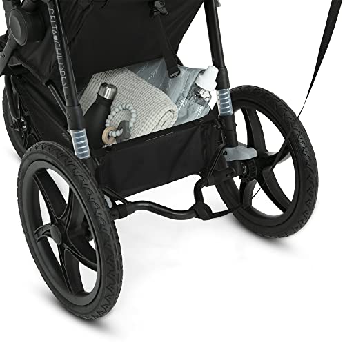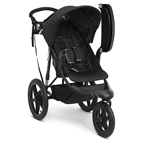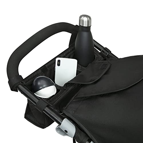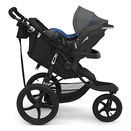 SMOOTH RIDE: 12-inch front wheel and 16-inch back wheels with back brakes | Puncture-proof wheels| Shock absorbing frame | Tons of storage space with the included parent organizer with two cup holders and extra-large basket under the frame    KEEPS KIDS & PARENTS COMFY: Extendable water-resistant canopy with UPF 50+ and peek-a-boo window | Adjustable foam handlebar works for all different heights | Swing out child tray | Reclining seat features multiple positions    COMPATIBILITY: Included adapter fits the following car seats: Graco SnugRide Click Connect; Evenflo Nurture & Embrace | For Britax B-Safe 35, use Adapter #10040 (sold separately) | For Chicco KeyFit 30, use Adapter #10020 (sold separately)    COMPACT FOLD: Flat fold and quick-release back wheels allow for hassle-free transport or storage | Folded size: 18.5”L x 15.5”W x 31.5”H    SAFE OPTION: 5-point safety harness with reflective piping for nighttime walks | Stroller includes safety tether to use while jogging | JPMA certified | Weighs: 33 lbs. | Assembled: 44.9”W x 24.4”D x 41.1”H| For ages 9 months up to 50 lbs.