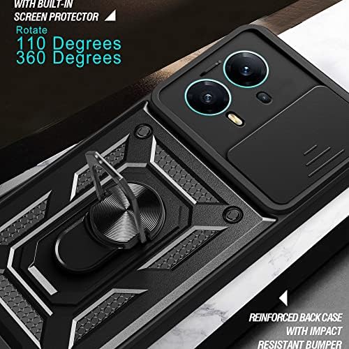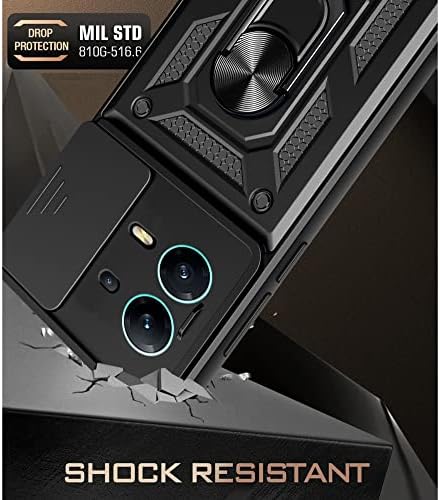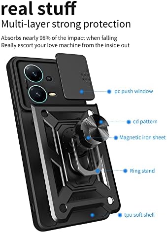 【Model】Phone case fit for Vivo V25 5G 6.44".    【Car Magnetic】The rugged phone case is equipped with a car magnetic suction feature, which allows you to securely mount your phone onto your car dashboard while driving. This ensures that your device stays safe and hands-free.    【Rotating Bracket】The case also features a rotating bracket design, allowing for adjustable viewing angles in both portrait and landscape modes. This makes it ideal for media consumption, video calls, and more.    【Sliding Window】The rugged phone case has a sliding window design to protect your camera lens against scratches, dust, and dirt. Additionally, it is made of durable materials that offer long-lasting protection to your device, ensuring that it stays safe even in the toughest of environments.    【Shockproof and Dropproof】Being designed to withstand accidental drops and bumps, the rugged phone case is shockproof and dropproof. It has undergone rigorous drop tests to provide the highest level of protection to your device.