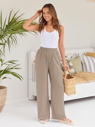 So slouchy and soft from our summer collection, these linen-blend pants feature an elastic waistline with wide-legs, side and back pockets. Effortless with a tucked-in tube top or classic with a sleek blouse, this pair has endless ways to wear. Featuring a relaxed fit with an elastic waist and convenient side and back pockets, these pants are perfect for lounging on the beach, a morning coffee run, or happy hour with the gals! MACHINE WASH, HANG DRY: To maintain your apparel's vibrant color we recommend machine washing with laundry bag on cold and hanging to dry. Use a low iron or steamer to restore that perfect flowy look. Size: Please Refer To Size Chart For Details Before Purchase Which We Provide In Our Pictures
