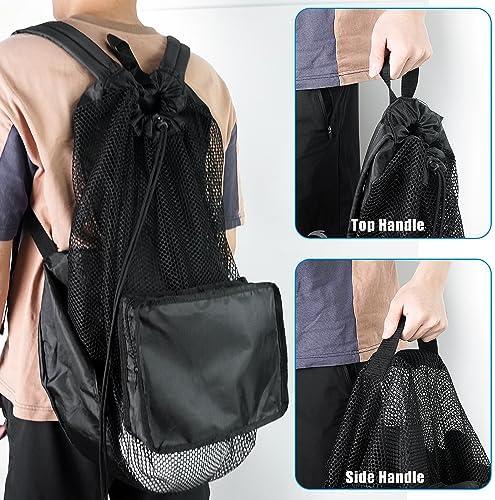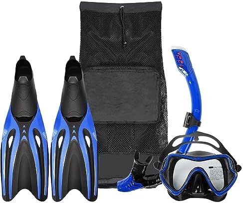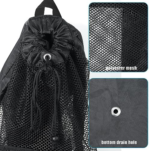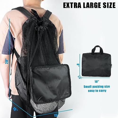 All In One Large Capacity. The dive bag measures height: 28 inch, bottom diameter: 15 inch. XL snorkeling gear backpack for mask, fins and wetsuit, exclusive dive bag that can fit everything you need for travel or going to the gym    Extra Large - The mesh dive gear bag is roomy for diving gears or sports equipments, front zipper pocket designed for goggles, snorkel or other essentials. Big size for storing everything you could need    Lightweight and Breathable - Made of polyester and mesh, the mesh snorkel backpack is NOT water resistant, great for drying diving equipments. Mesh material and bottom weep hole to allow for draining and drying your scuba gear    Easy to Carry and Space-saving Store - Top and side handle, padded and adjustable shoulder straps for portable back pack. The scuba diving backpack can be folded up into a small square for easy storage and travel, packing size: 10 x 9 inch    Oversized Beach Duffle Bag Ideal for Your Pool Trip - Idea choice for all water sports like scuba diving, snorkeling, swimming, surfing or boating to hold snorkeling gears & accessories. The mesh duffle bag can be used for workout clothes, sports equipment and even laundry as a drawstring travel mesh net bag