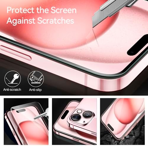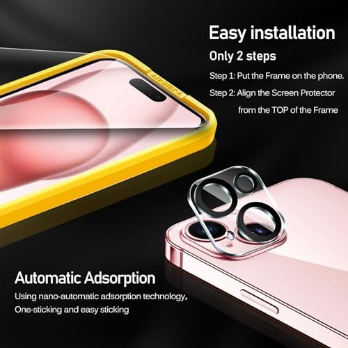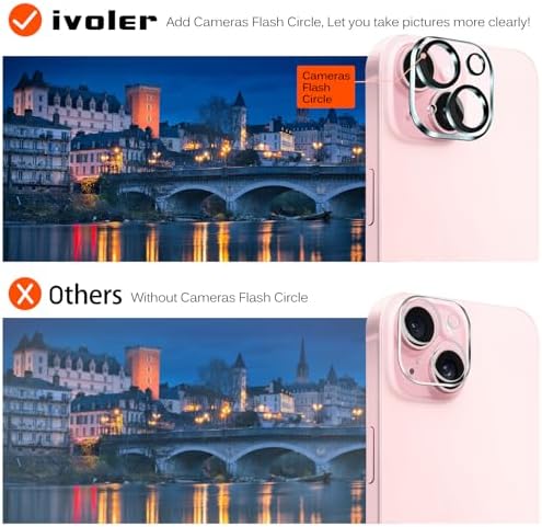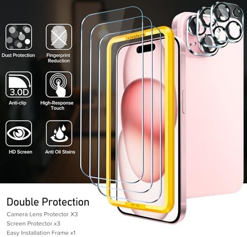 iVoler Screen Protector compatible for iPhone 15 6.1inch 2023, NOT fit for other model. Please check your phone model before purchasing. Before installation, please watch our installation guide and use the Alignment frame to ensure the screen protector installed better, making you have a better using experience.    Anti-Fingerprint : The surface of the protective film is treated with Anti-Fingerprint Coating and a plasma oleophobic coating, which is very smooth, effectively prevent fingerprints from sweat and oily smudges, making the screen very easy to clean, helping you get rid of some annoying things in daily use.    AR technology & Night shooting function: The glittering rear camera lens protector are featured with augmented reality "seamless" fusion new technology, with enhanced light transmission function, no need to design the flash hole position, even if the flash is turned on at night , it can be 99.99 % Guarantee the original quality of photos and videos.    Ultra-Clear & High-Definition :iVoler screen protector is made with high transparent featured which maintaining 99.99% response sensitivity and 99.99% optical-grade light transmittance, effectively blocking and filtering ultraviolet rays, and enhancing the visibility of the screen.    Include: 3x Screen protector, 3x Camera Lens Protector,1x Alignment Frame. Edge to edge full screen protector protection, so that the edge of the phone screen is not easily damaged, and provides comprehensive protection for your phone. If you have any questions, you can contact us directly, we will offer you a suitable solution within 1 business day !