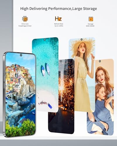 Snapdragon Gen2 8 Cores Processor: VIQEE U21 5G Android phone, equipped with Snapdragon Gen2 octa-core processor, up to 6GB RAM and 256GB ROM, supports expandable storage up to 1TB, providing you with a spacious storage room to store all your favorite photo or file.    Artificial Intelligence AI: Our phone has been connected to artificial intelligence AI ctgpt. You can tell AI what you are looking for or asking questions, and AI can only answer them. Please watch the video.    Perfect Screen Color Fidelity, Fluency, Sliding Smoothnes: VIQEE U21 is equipped with a 120Hz refresh rate 6.8"HD screen to ensure that the user experience is the core, to ensure that the Refresh Rate, Color Correction, Dynamic Frame Insertion, Color, Screen Sampling Rate and other dimensions are in an ideal state, and customize a more excellent and smooth experience for you.    Front 24MP+ Rear 64MP+13MP+8MP & AI Face Fingerprint Unlock: Equipped with ultra-clear front and rear cameras, which can easily and clearly capture every moment, use the macro lens to take close-up personal photos, further modify your photos with filters, and record beautiful moments with the lens anytime, anywhere.    Dual SIM & WIFI: Dual card slot design, support TF card expansion (maximum support expansion 1TB) dual SIM + TF card. Supported bands: 2G:850/900/1800/1900MHz 3G:850/900/1700/1900/2100MHz 4G:1 2 3 4 5 7 8 12 17 20 28A 28B B40. Please contact your SIM card operator to confirm whether the operator supports the above bands in your area.
