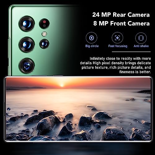 LARGE THIN SCREEN: With a 6.6in Incell HD screen, 2520x3088 resolution and ultra thin 1CM body, our 4G Unlocked Cell Phones delivers clear views and impressively bright and vivid colors.    HIGH DEFINITION CAMERA: Unlocked Smartphone xperience excellent photography with 24MP rear and 8MP front cameras, as well as options for filters and stickers, and fast face unlock in just one second.    FAST CONNECTIVITY: Connect effortlessly to WiFi(2.4G 5G 2 band), BT 5.0, built in GPS navigation, FM tuning, and network frequencies that support 4G, 3G, and 2G.    NETWORK COMPATIBILITY: This Mobile Gaming Smartphone supports FDD/TDD 4G 1 2 4 5 7 8 20 28A 28B 40, 3G WCDMA 850 1900 2100 MHZ, 2G GSM 850 900 1800 1900 MHZ networks. However, please check with your local carrier to ensure compatibility before purchase.    LONG LASTING BATTERY: Factory Unlocked Android Smartphone enjoy extended battery life with the 7000mAh battery, lasting up to 20 hours of talk time, 18 hours of music playback, and 6 hours of gaming. The innovative AI battery management system conserves power and extends standby time.