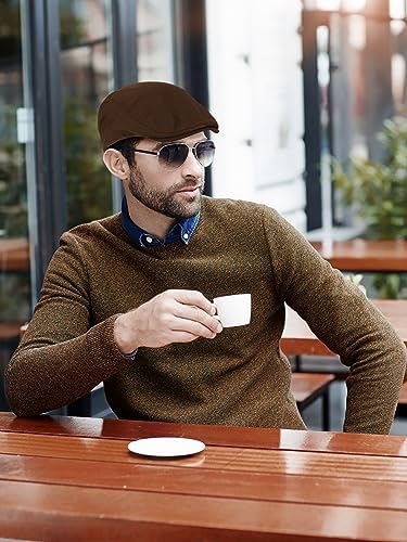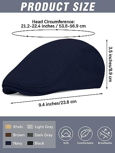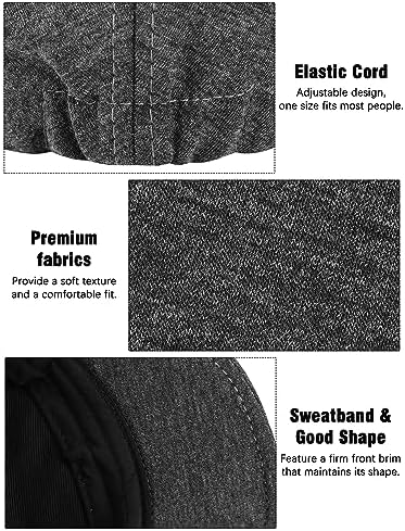 Package Includes: This newsboy cap set contains 6 men's newsboy caps in a variety of colors. With plenty of quantity and colors available, you can easily find a hat in this set to fit your everyday fashion needs. Selecting a proper hat that suits your everyday look in this flat cap set will be a breeze. Reliable Material: Our men's newsboy caps are made with premium fabrics that provide breathability and comfort. They are easy to secure in place and do not easily come off. With a visually appealing texture and a comfortable touch, these caps feature a firm front brim that maintains its shape. Elastic Design: These soft and stretchable men's cabbie driving caps are equipped with an adjustable drawstring at the back, allowing you to customize the hat's size. The circumference of the hat ranges from approximately 21.2-22.4 inches / 53.8-56.9 cm, with a height of 3.5 inches / 8.9 cm and a length of 9.4 inches / 23.8 cm, they are suitable for most people to wear. Stylish Design: Our cabbie driving caps are equipped with a sweatband on the inside, providing a comfortable and sweat-free experience. The front brim of the caps is specifically designed to provide ample protection against strong sunlight, without obstructing your line of sight during outdoor excursions. These caps are especially well-suited for men who engage in autumn and winter outdoor activities. Versatile Application: These men's newsboy caps are an excellent choice for everyday outdoor activities. They can be worn during hiking, driving, fishing, golfing, camping, traveling, gardening, and other outdoor pursuits. These caps also make great gifts for your father, husband, son, grandfather, and friends.         #106,344 in Clothing, Shoes & Jewelry ( )   #65 in