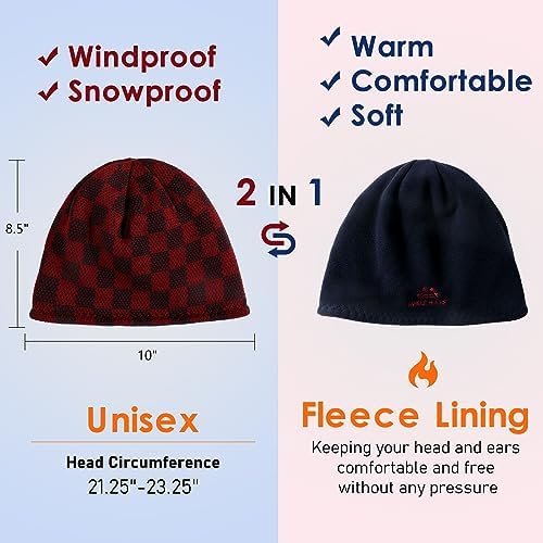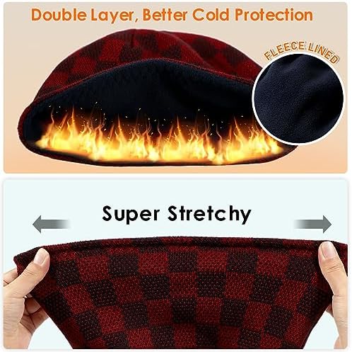 ULTIMATE COMFORT AND STYLE:The winter beanies made of durable knitted material on the outside and lined with soft thick fleece on the inside, keep your head and ears for maximum warmth and comfort, and the newly upgraded knitted construction provides good insulation, featuring a plaid design, is a trend-setting accessory for your casual wearing or formal attire CRAFTED HIGH QUALITY KNITWEAR: A unique 3D stereoscopic cut that provides a comfortable feel for our heads, the hexagonal design at the top of the beanie ensures that the fabric is tight and seamless, making it withstand the test of long time and harsh environments. New developed technology, precisely controlled by computer, to obtain the most beautiful and consistent sewing quality, ensuring that all beanie hats are excellent FLEXIBLE AND STYLISH:Another highlight of this beanie is its reversible design. You can wear it on either side, and one beanie hat gives you two stylish options. The plaid patterned side adds a stylish and modern feel to your look, while the solid color side provides a classic yet understated style MORE DYNAMICS FOR WINTER SPORTS: This fleece lined beanie are not only stylish and practical, but also suitable for all kinds of winter outdoor activities. The snug fit and excellent stretchy fabric allow for dynamic movement, and whether you're skiing, running, hiking, or just strolling through the park MATURE AND VERSATILE GIFT: This beanie is a practical and bright choice for birthdays, holidays or any special occasion. Don't let the cold weather dampen your spirit, embrace it with confidence and style. Upgrade your winter wardrobe with our men's and women's beanie hats and experience the ultimate combination of function and style         #569,318 in Clothing, Shoes & Jewelry ( )   #1,370 in   #1,531 in