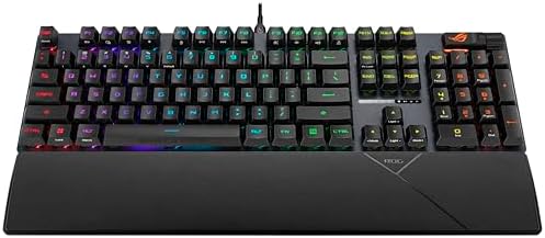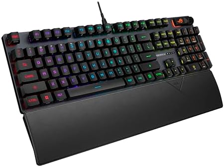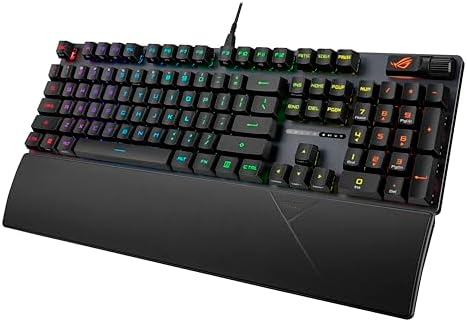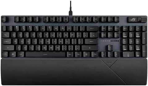 ROG RX optical switches: Pre-lubed RX switches feature centralized lighting and provide consistent wobble-free keystrokes with near-zero debounce delay    IP57-rated: Waterproof and dust resistant for long-lasting durability    Hotkeys: F1–F5 keys are pre-programmed as hotkeys for Xbox Game Bar and recording    Intuitive controls: Multifunction button and three-way knob for media playback, volume, and keyboard lighting    Sound-dampening foam: Integrated foam absorbs pinging noises and echoes for improved acoustics