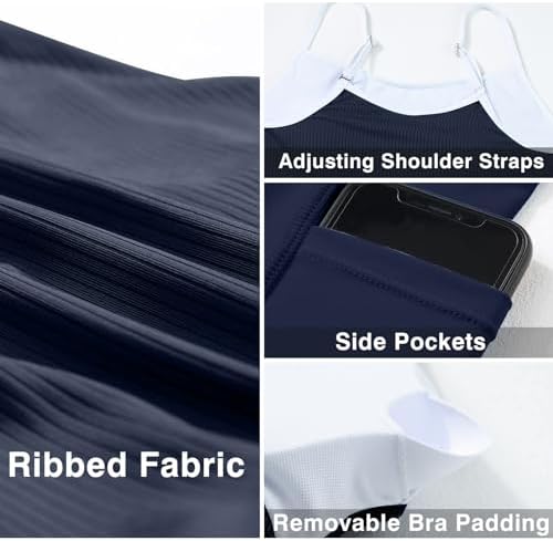 Aleumdr Women’s Ribbed One Piece Swimsuits Modest Swim Dress Tummy Control Adjustable Straps Bathing Suit with Pockets