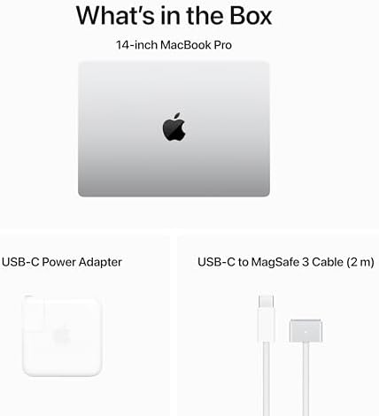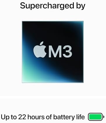 SUPERCHARGED BY M3 — With an 8-core CPU and 10-core GPU, the Apple M3 chip can help you blaze through everyday multitasking and take on pro projects like editing thousands of photos or 4K video.    UP TO 22 HOURS OF BATTERY LIFE — Go all day thanks to the power-efficient design of Apple silicon. The MacBook Pro laptop delivers the same exceptional performance whether it’s running on battery or plugged in. (Battery life varies by use and configuration. See apple.com/batteries for more information.)    BRILLIANT PRO DISPLAY — The 14.2-inch Liquid Retina XDR display features Extreme Dynamic Range, over 1000 nits of brightness for stunning HDR content, up to 600 nits of brightness for SDR content, and pro reference modes for doing your best work on the go. (The display has rounded corners at the top. When measured diagonally, the screen is 14.2 inches. Actual viewable area is less.)    FULLY COMPATIBLE — All your pro apps run lightning fast — including Adobe Creative Cloud, Apple Xcode, Microsoft 365, Medivis SurgicalAR, and many of your favorite iPhone and iPad apps. And with macOS, work and play on your Mac are even more powerful. Elevate your presence on video calls. Access information in all-new ways. And discover even more ways to personalize your Mac. (Apps are available on the App Store.)    ADVANCED CAMERA AND AUDIO — Look sharp and sound great with a 1080p FaceTime HD camera, a studio-quality three-mic array, and a six-speaker sound system with Spatial Audio.    CONNECT IT ALL — This MacBook Pro features a MagSafe charging port, two Thunderbolt / USB 4 ports, an SDXC card slot, an HDMI port, and a headphone jack. Enjoy fast wireless connectivity with Wi-Fi 6E and Bluetooth 5.3. Supports one external display. (Wi‑Fi 6E available in countries and regions where supported.)    MAGIC KEYBOARD WITH TOUCH ID — The backlit Magic Keyboard has a full-height function key row and Touch ID, which gives you a fast, easy, secure way to unlock your laptop and sign in to apps and sites.