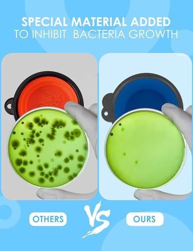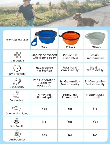 【Unique and Different】Aonkey dog bowl set is in a league of its own, addressing issues from feedback on other bowls. The upgraded carabiner boasts a larger, sturdier opening, reducing the risk of breakage. Plus, enjoy the added convenience of bottle carriers, compatible with most cola-shaped water bottles in the market.    【Revolutionary Structure】Say goodbye to the hassle of assembled plastic rings. Aonkey's foldable dog bowl boasts an upgraded structure, integrating soft silicone with a hard rim. No more worries about the ring coming off or cracking, and the clip hole remains intact.    【Unmatched Stability】Thanks to the integrated hard rim, our dog bowl stays sturdy when unfolded. No more spills or losing structure. Carry it confidently with one hand, even when it's full of water.    【Perfect for On-the-Go】These travel bowls are a breeze to pack since they collapse effortlessly. Clip them to a backpack or water bottle – ideal for outgoing to the park, hiking, driving, or any social activities with your furry friend.    【Safety First】Crafted from high-quality, food-grade silicone with a tempting beef flavor, our dog foldable bowl eliminates the typical silicone smell that dogs dislike. BPA-free, dishwasher safe, it's not just convenient but also healthy for your pet.           #1,769 in Pet Supplies ( )   #4 in