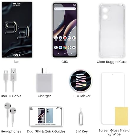 GSM Unlocked: Use your preferred GSM carrier with ease. Compatible with T-Mobile, Metro PCS, and others. Sim card not included. For availability on select networks, please consult your service provider. Note: This device is not compatible with AT&T/Cricket new activations or CDMA networks like Verizon and Sprint.    Perfect Connection: Stay effortlessly connected to your entire ecosystem with NFC technology. Simplify your daily life with contactless payments, quick and efficient data transfers.    Unleash Your Data: Conquer your digital world with the G93's colossal 6GB RAM and 128GB storage. Download, stream, and play without limitations.    Next-Level Gaming: Ignite your passion with a blazing-fast 120Hz refresh rate display. Experience unparalleled smoothness and responsiveness, letting you dominate every level with unmatched gameplay.    Raw Power: Equip yourself for victory with the cutting-edge Arm Cortex A76 Octa-Core MediaTek Helio G99 Processor. Crush every challenge and unlock new possibilities.    Android 13 Ready: Immerse yourself in the latest advancements and optimizations with Android 13. The G93 is future-proof and ready for anything.    Box content: G93, Rugged Case, Screen Glass Shield, Quick Guide, Sim Key, Charger, USB-C cable, Headphones Sticker.