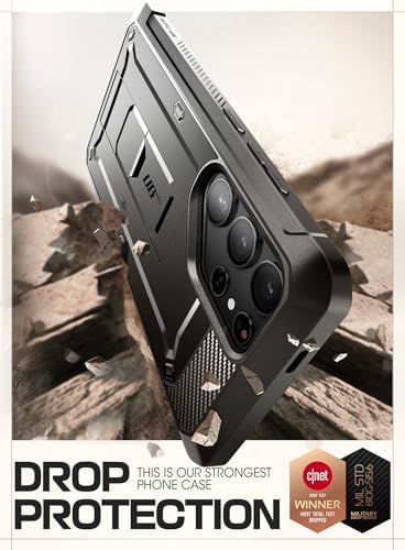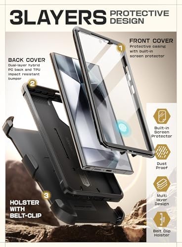 [2 Front Frames]: This Galaxy S24 Ultra Phone Case includes two front frames, One with a built-in screen protector, the other without a built in screen protector, please choose one of them for your preference.    [Rotatable Belt-Clip]: Experience user-friendly convenience with an included detachable rotating Belt-Clip.    [Precise Cutouts]: Easy access to all ports, buttons and features, thanks to the exact design of the Unicorn Beetle Pro.    [20 Feet Drop Test]: This Samsung S24 Ultra Case is made of multi-layer TPU and polycarbonate materials for ultimate drop protection.    [Compatibility]: Compatible with Samsung Galaxy S24 Ultra 5G (2024 release).