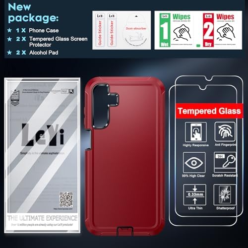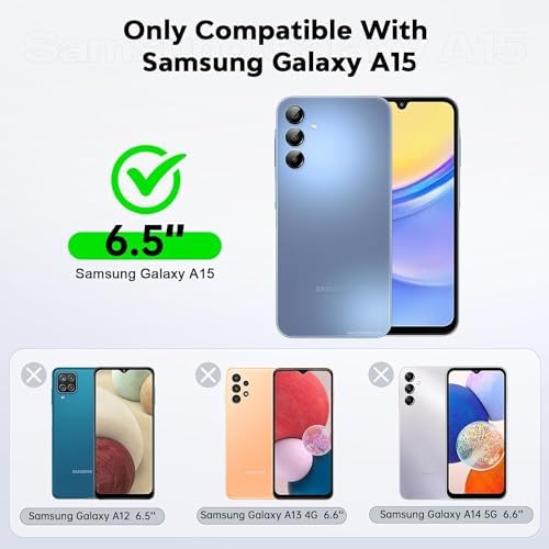 [Compatible Model] - Specially designed for Samsumg Galaxy A15 5G [6.5-inch]. no suitable to any other phone model ,so please note your phone model carefully before you place the order.Come with 2 PCS tempered glass screen protector.    [Military Grade Protection] Unique detachable design and 3-in-1 Military Grade protection: shockproof, anti-scratch and drop protection. Withstands scratches, bumps and impacts.    [Enhanced Screen and Camera Protection] Equipped with high-quality tempered screen protector and raised lip protection for the screen and camera, it is a double guarantee for the screen and can avoid daily wear and tear, better protecting the screen and camera.    [Highly Protective Material] The heavy duty, rugged telephone case is made of TPU, which is soft, smooth and easy to clean while still providing excellent anti-drop protection and anti-scratch performance.    [Flexible Tactile Buttons & Precise Cutout] - The wide accurate cutouts and responsive press buttons case make it easy to get access to all the ports, cameras, speakers and mics and other functions of your phone. Easy to press.    [Non-slip Grip] The elegant curves and matte surface provide a firm and comfortable grip for your phone while providing a non-slip grip for added safety.    [What You Get] LeYi phone case comes with 30 days warranty. If you have any issues (especially confuse about the installing), please feel free to contact us.
