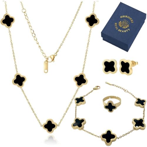 ? SPECIFICATION : Clover Sets have a stunning shine - the very best only for you. Clover sets include Earrings, Necklace & Bracelet. Clover Necklace is adjustable and has a legth of 16 inches with a 2 inch extension for that perfect fit. This Clover Pendant is Double Sided and incase the pendant flips over it will look exactly the same. Comfortable to wear for all ocassions making you feel super sexy and attractive! ? DESIGN & STYLE : The Clover is known as Lucky Clover. The leaves of four-leaf clovers are said to stand for faith, hope, love, and luck. Each leaf of the four-leaf clover also represents health, wealth, love and happiness. Wear it daily and it will always bring you good luck. ? HYPOALLERGENIC -- Clover sets are made of hypoallergenic stainless steel. Our Jewelry is Anti Allergic, Nickel Free, Lead Free which makes our Jewelry Ideal for Sensitive Skin. ? ABOUT OSIRIDEH2-- OSIRIDEH2 brings to you modern and contemporary jewelry for every occasion with fine craftmanship bringing out the perfect finish. ? LOVELY GIFT-- Packed in a Lovely Velvet Bag makes Great Gifts for Special Ones, Girlfriends, Women, Spouse, Girls for Birthdays, Weddings, Parties, Thanks Giving Day, Valentine's Day, Mother's Day, Christmas, New Year's etc.         #18,007 in Clothing, Shoes & Jewelry ( )   #25 in   #111 in