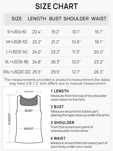 Size Guide: US SIZE, Small=(US 4-6), Medium=(US 8-10), Large=(US 12-14). This tanks is super comfy and soft, perfect for spring and summer. Unique Design: Knit tanks will be popular in 2024, knit has a rich texture. Feel the warmth of fashion stitch by stitch. This basic knit features a classic square neck, sleeveless, ribbed texture, slim fit, solid color, casual and simple style. The basic trendy square neck tanks subtly reveals the delicate collarbone, and with a vintage necklace, it instantly enhances the fashion sense of the overall look. This kind of matching not only makes the neck look slimmer, but also emphasizes the good figure of women. Occasion: Perfect for daily wear, vacation, going out, dating, offices, home. First choice for fall/winter inner wear. This sleeveless top is a must-have for every woman! Washing Instruction: Machine wash with a laundry bag, hand washes cold, and do not bleach.