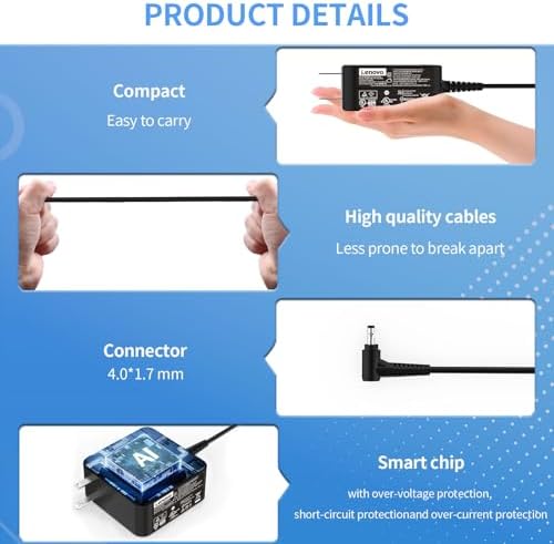 Output Max: 20V 2.25A 45W, Input Volt Range: 110-240V, Tip Size: 4.0mm x 1.7mm Round Tip    Compatible for Lenovo Ideapad100-15IBD (NOT COMPATIBLE WITH 100S-11IBY); 100S-14IBR 110-15ACL 110-15ISK 110-15IBR (80T7); S145-15AST S145-15API S145-15IWL; 310 320 320S 330 330S 510 520 710S; for Flex 4 Flex 5 1470; Part numbers ADP-45DW BA ADP-45DW C ADL45WCC PA-1450-55LL 80TJ 81N3 81H5 81VS 81WA 81SS and others (IF IN DOUBT, SEE LIST BELOW AND COMPATIBILITY PHOTOS!)    Compatible for Lenovo Yoga 910 920 C630 C930 C940 S940 910-13 920-13 c930-13 910-13IKB 920-13IKB C940-14IIL Yoga 730 730s s730 720-13 730-13 730s-13 s730-13 720-13IKB 730-131KB 720S-13IKB 730S-13IWL S730-13IWL S730-13IML 720S Touch-13IKB 720S-13ARR    Our Charger used Manufactured with the high-quality materials, safe and durable, with over-voltage protection, short-circuit protectionand over-current protection.Can extend the life of the charger.    You'll get 1 x 45W Charger, 1 x Power Cord, 1 x Instructions, and Two-year warranty.