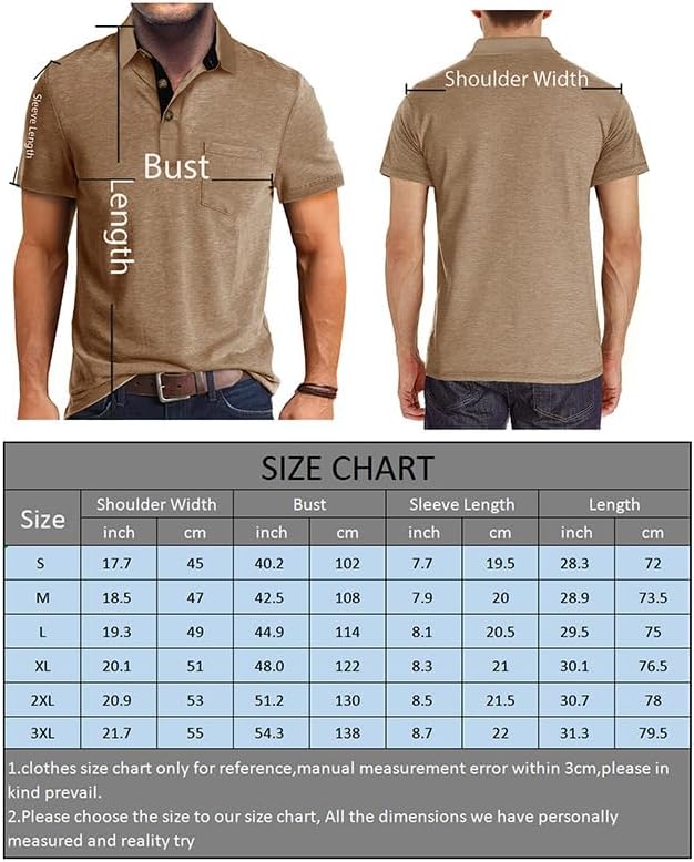 【Material】:This short sleeve polo shirt super soft and lightweight,comfortable to wear. 【Design】:The mens fashion polo shirts classic solid color,button closure and classic lapel collar design,casual fit,It features moisture wicking and air permeable,classic cut long sleeve soft cotton fabric make this polo a go to for the office or the weekend. 【Feature】:Delicate front pocket button design make these men's polo shirts more classy,high stretch,no pilling and no wrinkling,convenient to wear. 【Occasion】:These casual polo shirt comfortable and slim fit casual wear,suit for any casual occasions,such as daily wear,business,office,work,date,golfing,outdoor,party,travel,camping,street,beach etc. 【Note】:Machine washable.Our muscle polo shirts will not shrink after washing and won't feel too clingy.Please carefully refer to the tshirts size chart before ordering.Any problem about our product,please feel free to contact with us,we will respond and resolve your issues in a timely manner.Look forward to your choice.         #2,675 in Clothing, Shoes & Jewelry ( )   #14 in