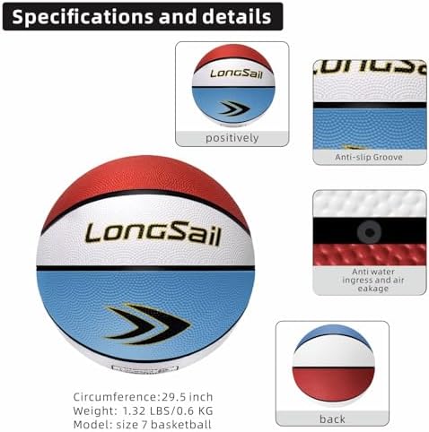 ?【BUID to LAST】 Crafted from premium-grade rubber, this basketball is not only environmentally friendly but also free from any unpleasant odors. Its high-quality construction ensures minimal deformation, color fading, or discoloration. ?【OFFICIAL SIZE】29.5" Size 7 basketballs are ideal for 12+ teenagers and adult men& women players, meeting official game standards. We have also designed women's basketball/ girl's basketball in color schemes, which make ideal Christmas choices. ?【STRICT CHOICE of MATERIAL】Our basketballs are made of premium eco-friendly rubber that resists deformation and fading. Each Longsail basketball undergoes rigorous impact testing to ensure excellent durability. ?【SUPERIOR AIR RETENTION and BOUNCE】With a leak-proof air valve, about 500 denier nylon winding tire, ensuring exceptional air retention, deformation resistance. With impressive bounce performance, they enhance shooting, jumping, and passing crossovers, or delivering precise passes. ?【EXCELLENT GRIP】Featuring a deep groove structure and heightened rib design, our basketball balls offer enhanced ball handling capabilities. This innovative design facilitates easier ball grip, providing superior touch and control.