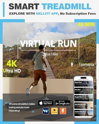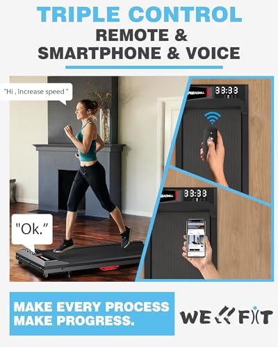 MANUAL ADJUST INCLINE: Incline (0-3%-6%) helps to change the muscles you emphasize during your workout lets you change up your workout and burn more calories (weight loss).    AI VOICE CONTROL SMART TREADMILL: Voice control offers hands-free of controling the speed, on and off. Free your hands and focus on working via WELLFIT App (no subscription fee)    2.5HP MOTOR, 40dB OPERATION, 0.6-3.8 MPH: silent walking pad offers powerful running experience while maintaining a quiet operation without distbur neighbor and family. Recommend it use at night or morning!    QUIET TREADMILL TREADMILL FOR WORKING FROM HOME: Low decibel for indoor use. Incorporate the walking pad treadmill into your office or workplace as part of a wellness program. Take active breaks and walk on the treadmill to promote physical activity and productivity.    Smart Zwift Kinomap Apple Health Treadmill: works with Zwift Kinomap WELLFIT Apple Health Apps, making home workout more interesting!