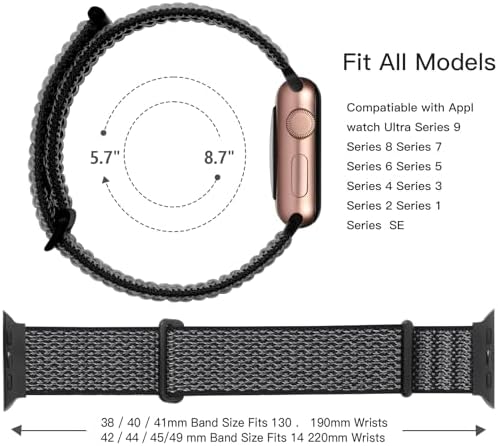 ✅【Fit All Models】Lenrao 3 pack soft nylon solo loop bands compatible with apple Watch bands 44mm 42mm 45mm 49mm 38mm 40mm 41mm, iWatch Ultra, Ultra 2, SE, Compatible with Apple Watch Series 9 Series 8, Series 7, Series 6, Series 5, Series 4, Series 3, Series 2 and Series 1 ✅【Soft & Breathable Nylon+Yarn】Lenrao compatible with iwatch bands 45mm for men is made of high-quality nylon and yarn. Soft and breathable is the most important for a band on the wrist, to improve the softness and breathability of the strap, we made the band with upgraded nylon, and specially added light yarn when weaving, which can make the bands super soft and breathable, bringing you comfortable feeling when exercising, leisure, working, sleeping ✅【Easy to Wear & Adjust Size】Sport nylon for iWatch bands women men come with adjustable loop buckles and sturdy hook & loop fasteners, easy to adjust the band to fit your wrist and wearing firmly. Size fitting for women and men wrist: 38mm/40mm/41mm Size for 5.1"-7.5" (130mm-190mm) wrists, 42mm/44mm/45mm/49mm Size for 5.7" - 8.7" (145mm-220mm) wrists, no worry about the size problem again ✅【 Surprise Gift 】 Lenrao Sports Circle replacement wristbands are suitable as gifts for Valentine's Day, Halloween, Christmas, birthday Easter, and other holidays. Receiving gifts can be exciting for a whole day. ✅【Multiple Colors to Fit Your Daily Mood】Multiple colors for Apple watch band 42mm men women can not only dress up your Apple watch, but also match your daily mood, keep your watch and daily mood fresh at all times. We specailly make 3 different colors in a package, hope you can find different pleasures in these colorful bands #1,737 in Cell Phones & Accessories ( ) #148 in