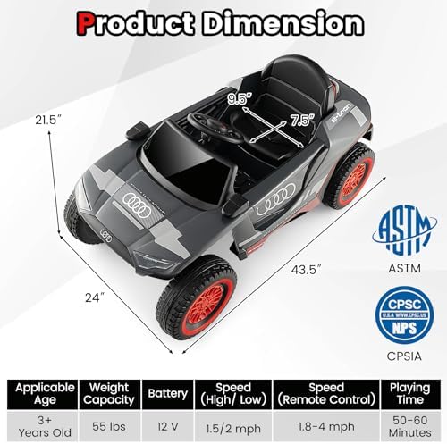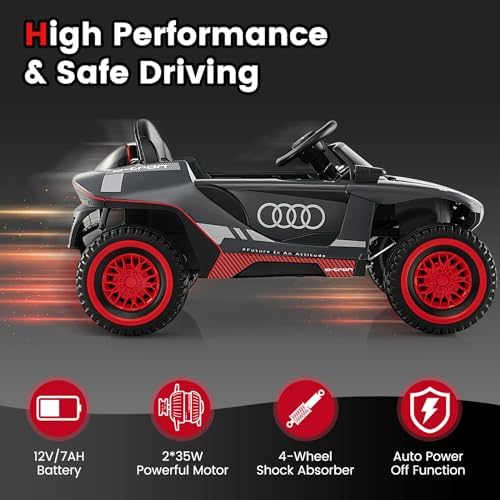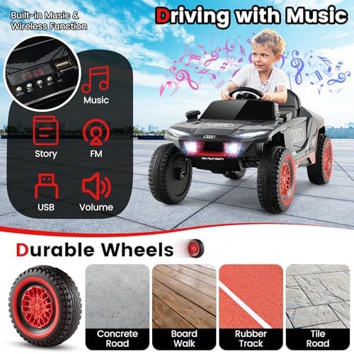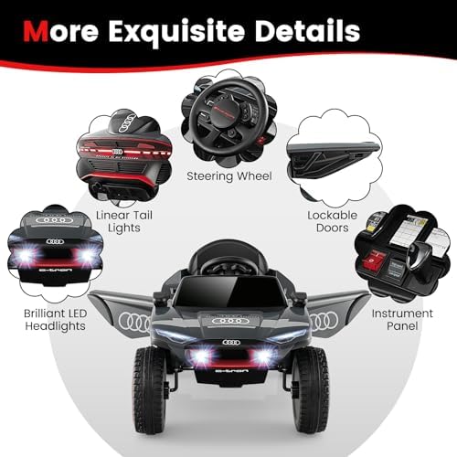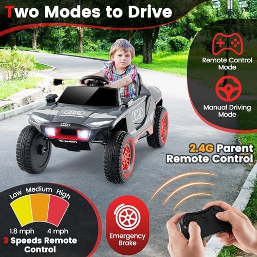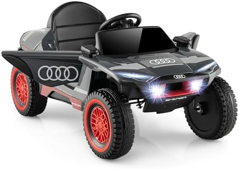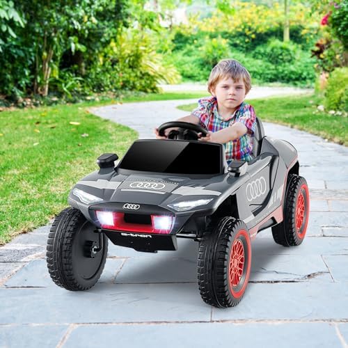 Costzon Ride on Car, Audi Licensed E-tron Racing Car, 12V Battery Powered Electric Vehicle with Remote Control, LED Lights, 4 Suspension Springs, Sports Car for Kids to Drive (Gray)