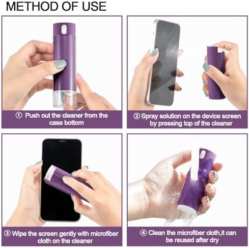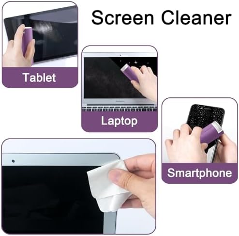 ✨ 2 in-1 Screen Cleaner Kit: walrfid screen cleaner spray and wipe contains a screen cleaner spray with microfiber cloth and built-in 10ml cleaning solution, an extra bottle of 10ml cleaning solution, a small keyboard brush and soft plush glasses clean cloth. Spray and wipe storage integrated. By employing easy rolling motions, the laptop cleaner can effectively clean fingerprints, dust, dirt, and smudges from the glass surface of screens, keeping your electronic device streak-free and shiny.    ? Screen Cleaner Mist and Microfiber Fiber Cloth for Electronics: Phone screen cleaner screen cleaners are anti-static, which helps remove dust, oil and fingerprints. The ipad screen cleaner can be formulated to be safe for use on various types of screens, including LCD, LED, touchscreen displays, cell phone, tablet PC, laptop, indicator, TV, iPad, iPhone, Macbook, watch, monitors, e-Readers, car displays screen; the glass of eyeglasses, sunglasses, the lens of the camera, etc.    ? Cleaning Solution Refill and Multi-function Cleaning Kit: For extra large screens like computer TVs, the solution will also be enough, because walrfid is equipped with twice the solution of other brands. walrfid is equipped with a glasses cloth, which can be cleaned to some corners and crevices that are difficult to wipe. walrfid iphone cleaning kit also provides a keyboard brush, which cleans the phone screen, the lens of the camera and eyeglasses.    ? Convenience and Portability: The macbook screen cleaner is available in compact, small portable bottles, making them convenient to carry and use on the go. The alcohol-free formula is gentle on your devices while the microfiber cloth is washable and reusable, making it a convenient solution for all your cleaning needs. A good gift for students, teachers, white-collar office workers, photographers, and anyone who loves a gadget cleaning kit.    ? Enhanced Screen Longevity: Regularly cleaning electronic device screens with a screen cleaner tool can help maintain a clean and clear display. It effectively cleans screens, removing fingerprints, smudges, dust, and other particles that can accumulate on the surface, which can contribute to the overall longevity of electronic device screens.