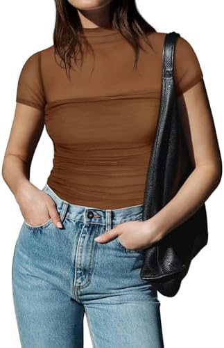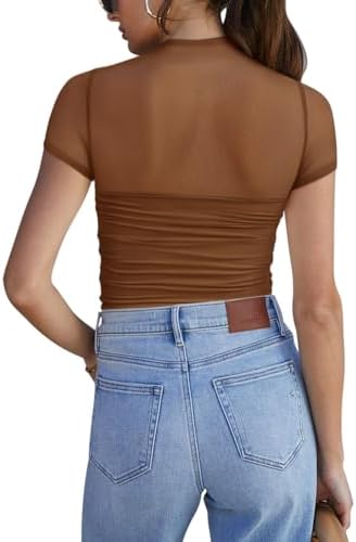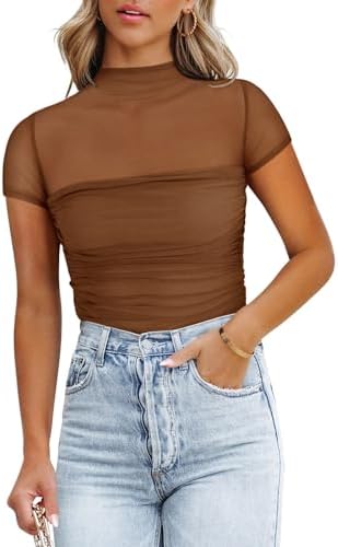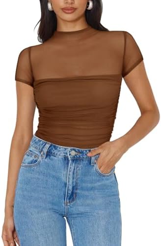 ?Fabric: Sheer mesh, 84%Polyester+16%Spandex, lightweight and super soft, fantastic stretch and the slightly mesh material gives a more premium sexy and mysterious feel, suitable for any body type, perfect body suits for women.Mesh Bodysuit is a wardrobe essential for any fashion-forward individual. ? Slimming body suits for women, layered ruched decoration from chest to waist with super soft material, slight support for tummy area, make it more slim fitting, bring a sense of detail design to basic styles, but also make them more elegant and versatile, great staple for your wardrobe. ?Versatile and Stylish: Basic short sleeve bodysuit for women with 2 snap buttons closure at crotch, Mock turtle neck, visually elongate the neck, modest and still feminine, classy look for a date wear vibrant color, perfect going out outfits for women. ?Fashion aesthetics:This snatched body suit combine with sheer mesh and polyester fabric, different textures to splicing can maintaining comfortable wearing and adds a sense of layering,a touch of allure,while the black color exudes sexiness. ?Occasion:Fashion sexy body suits women,great for going out, daily wear, streetwear, country concert, rave party, club, dating, beach, travel, vacation, office etc. Best laying for spring,summer and fall. You can pair it with jeans, suit pants, short skirts, definitely A spin on a classic.