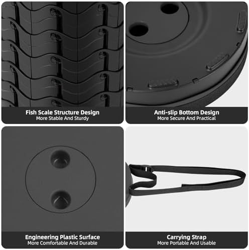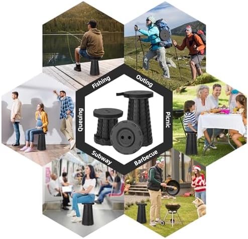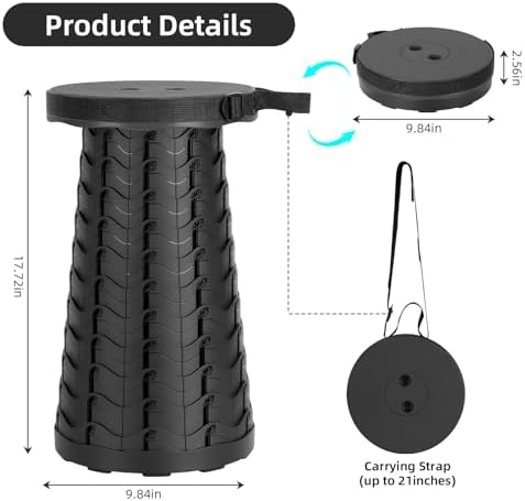 【Fish Scale Structure】The collapsible stool is made of high-density thickened PP material. And we use fish scale structure and high-precision buckle design to increase the strength, rigidity and stability of the folding chair. So our collapsible stool will be more sturdy and durable, with a load capacity of 400 pounds.    【Easy to operate】 We have added a frosted surface to the folding stool and a non-slip design at the bottom. So everyone can use our folding stools comfortably and safely. Our fish scale structure is designed so precisely that anyone can easily open and close it as described in the operating instructions.    【12 Height Levels】The height change of our portable chair from fully closed to fully open is 2.56 inches to 17.72 inches. We have designed twelve heights, you are free to choose the height that makes you comfortable and use it. So our telescopic stool can be used by you and all your family.    【Portable】When fully closed, the size of our portable stool is 9.84 inches*9.84 inches*2.56 inches. And we added a carrying strap that can be adjusted in length. You can just carry it on your trip. You can also put our folding stool in your backpack or in your car. In short, it won't take up too much space, allowing you to travel easily!    【Unique Gift】 Our camping chair is suitable for all scenarios such as hiking, fishing, traveling, camping, barbecues, outdoor concerts, or queuing. It is the most unique gifts for fisherman, outdoor enthusiasts, and gardening enthusiasts. Choose our foldable stool with confidence. If you encounter any difficulties in use, please contact us and we will reply to you within 24 hours and solve your problem.