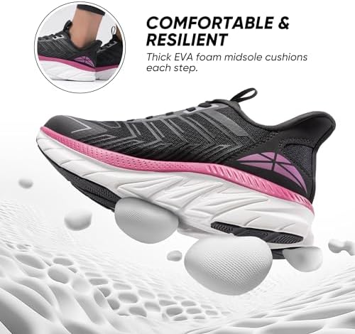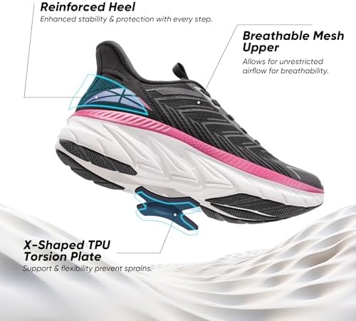 Supportive Midsole & Insole: The thick EVA foam midsole offers rebound and shock absorption, alleviating pressure and impact on the joints with the thickened soft insole. Easy On & Off: With the out-turned collar and elastic no-tie laces you can put on and remove these shoes with minimal effort. Enhanced Stability & Fit: The X-shaped TPU anti-torsion plate in the midsole ensures enhanced stability and prevents twisting that can lead to sprains, while the 3D textured design strengthens the upper for durability and a secure fit. Breathable & Skin-Friendly: The layered mesh fabric upper allows optimal air circulation, while the interior features elastic, skin-friendly Lycra fabric that minimizes friction, ensuring breathability and ventilation. Slip-Resistant Outsole: The specially crafted rubber outsole features a textured design for outstanding slip and abrasion resistance, making this pair ideal for extended walks.         #2,923 in Clothing, Shoes & Jewelry ( )   #9 in