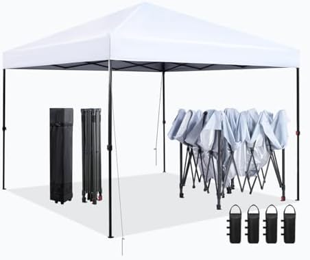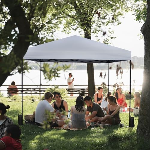 FAB BASED 10'x10' Pop Up Canopy Tent, Instant Shade Canopy Tent Adjustable Height with Wheeled Carry Bag for Outdoor Events, Parties, and Picnics[White]