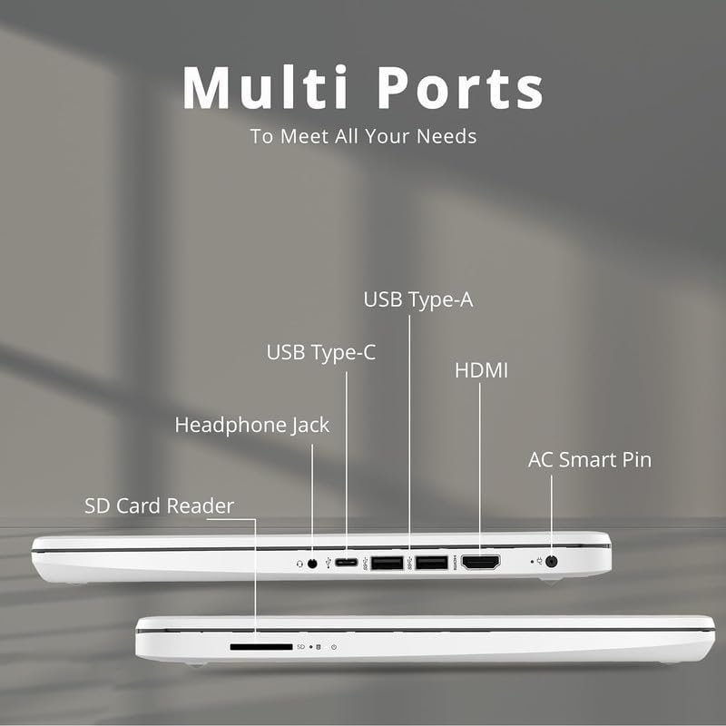 ?【Upgraded to 4GB DDR4 + 128GB Storage】With adequate high-bandwidth 4GB RAM to smoothly run multiple applications and browser tabs all at once. The 64GB eMMC storage ensures quick boot-up and supports HD video playback. Plus, get an extra 64GB memory card for additional office and webinar storage needs    ?【Quad-Core Intel Celeron N4120】Equipped with a Quad-Core Intel Celeron Processor, running at 1.1 GHz base frequency and boosting up to 2.6 GHz, with 4 MB cache and 4 cores. Enjoy smooth performance and fast connectivity, perfect for your everyday needs. Experience Intel power in a budget-friendly computer.    ?【14.0" HD LED Display】14.0-inch diagonal, HD (1366 x 768) BrightView display with micro-edge design offers vivid visuals at 220 nits brightness and 45% NTSC color coverage. Versatile for home, student, professional, small business, school, and commercial use. Perfect for online classes, Google Classroom, remote learning, and Zoom meetings.    ?【Windows 11 Home in S Mode】Experience the most secure Windows ever built with fast boot times, increased responsiveness, and added protection against phishing and malware. (You can EASILY switch to regular Windows 11 Home: Open Microsoft Store > search and select "Switch out of S Mode" > select "Get".)    ?【Authorized MarxsolBundle】12.76 x 8.86 x 0.71 Inches, 3.24 lbs. 1x HDMI 1.4b / 2x USB-A 3.1 / 1x USB-C 3.1 / 1x headphone/microphone combo / 1x Multi media memory card reader. WiFi, Bluetooth, HP TrueVision 720P Camera with integrated dual array digital microphones, Up to 11.5 Hours Battery Life, White, + MarxsolAccessory includes 64GB memory Card & 6-in-1 USB-C Docking Station Hub, HDMI & USB Cable, Mouse Pad and Wireless mouse.